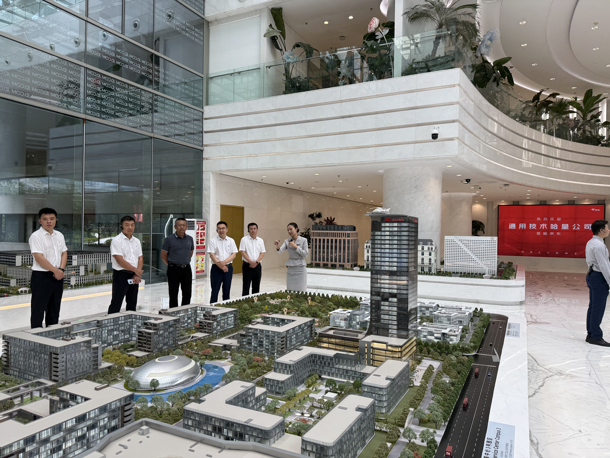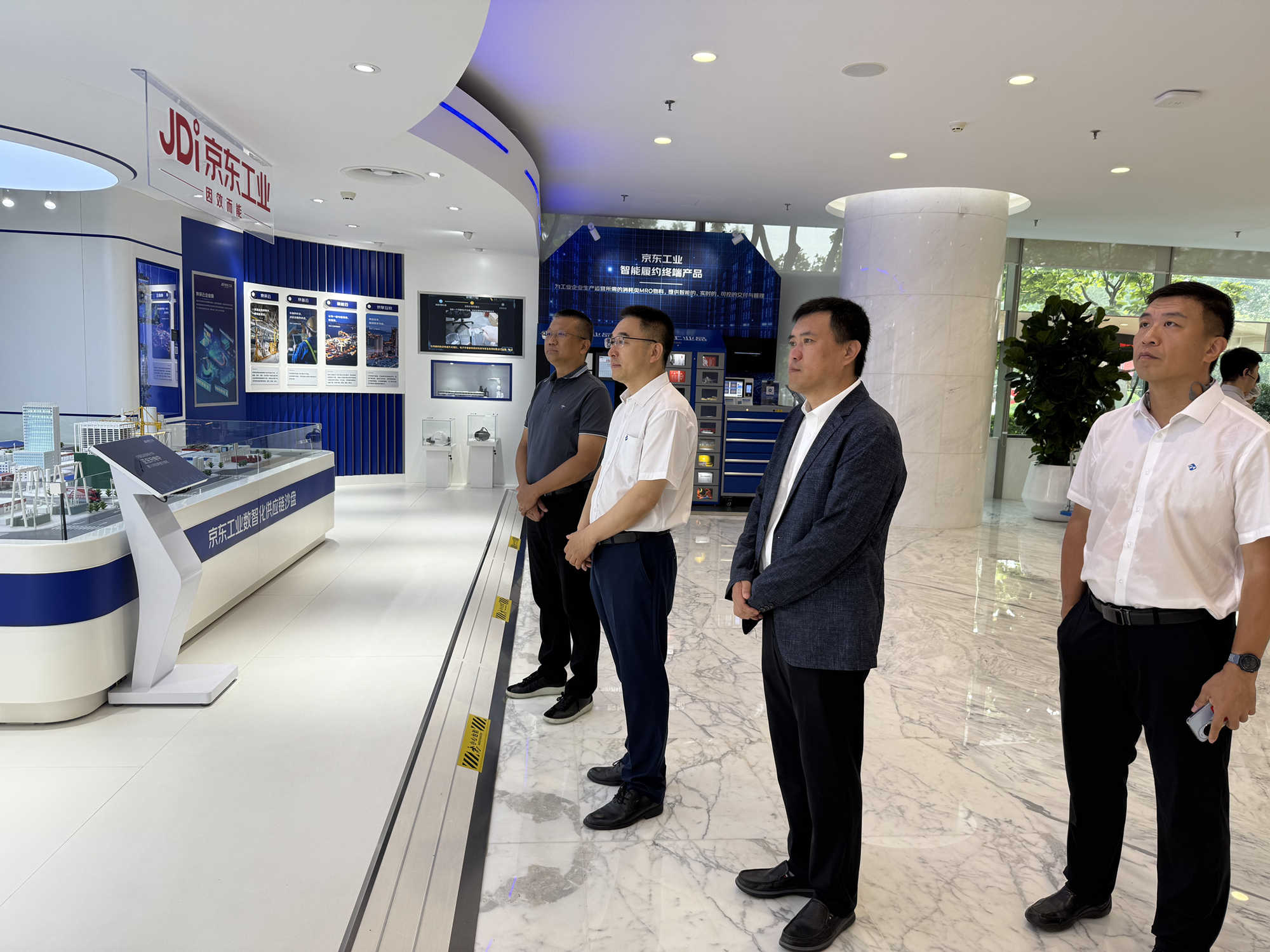 座谈前,刘国福一行在孙志祥的陪同下,参观了京东集团展厅,了解京东集团的发展历程、业务布局和京东工业的发展模式。
