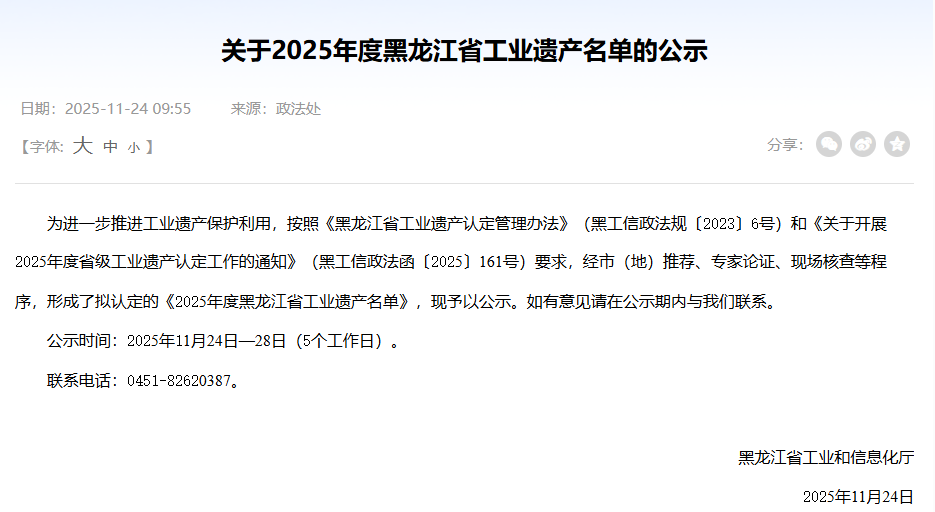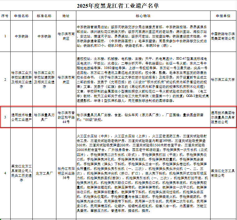 近日,黑龙江省工业和信息化厅对2025年度省级工业遗产名单进行了公示,通用技术哈量公司凭借其深厚的历史文化底蕴与突出的工业遗产价值成功入选,成为黑龙江省传承工业文明、彰显时代精神的新标杆。