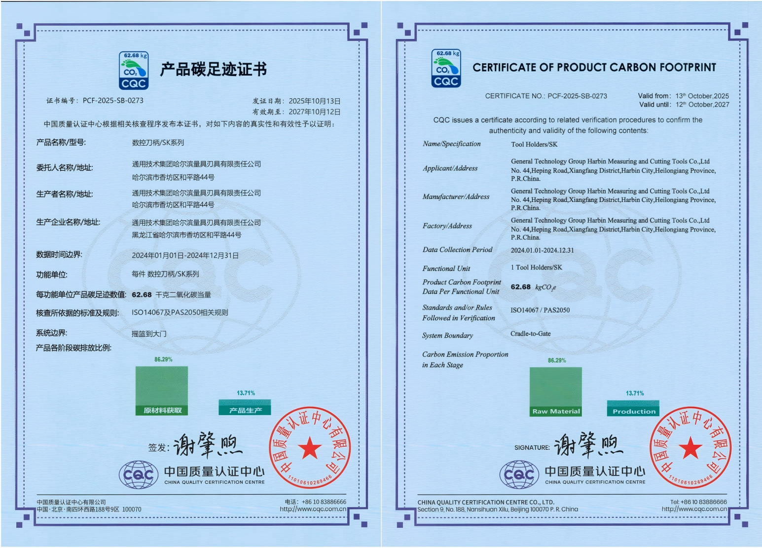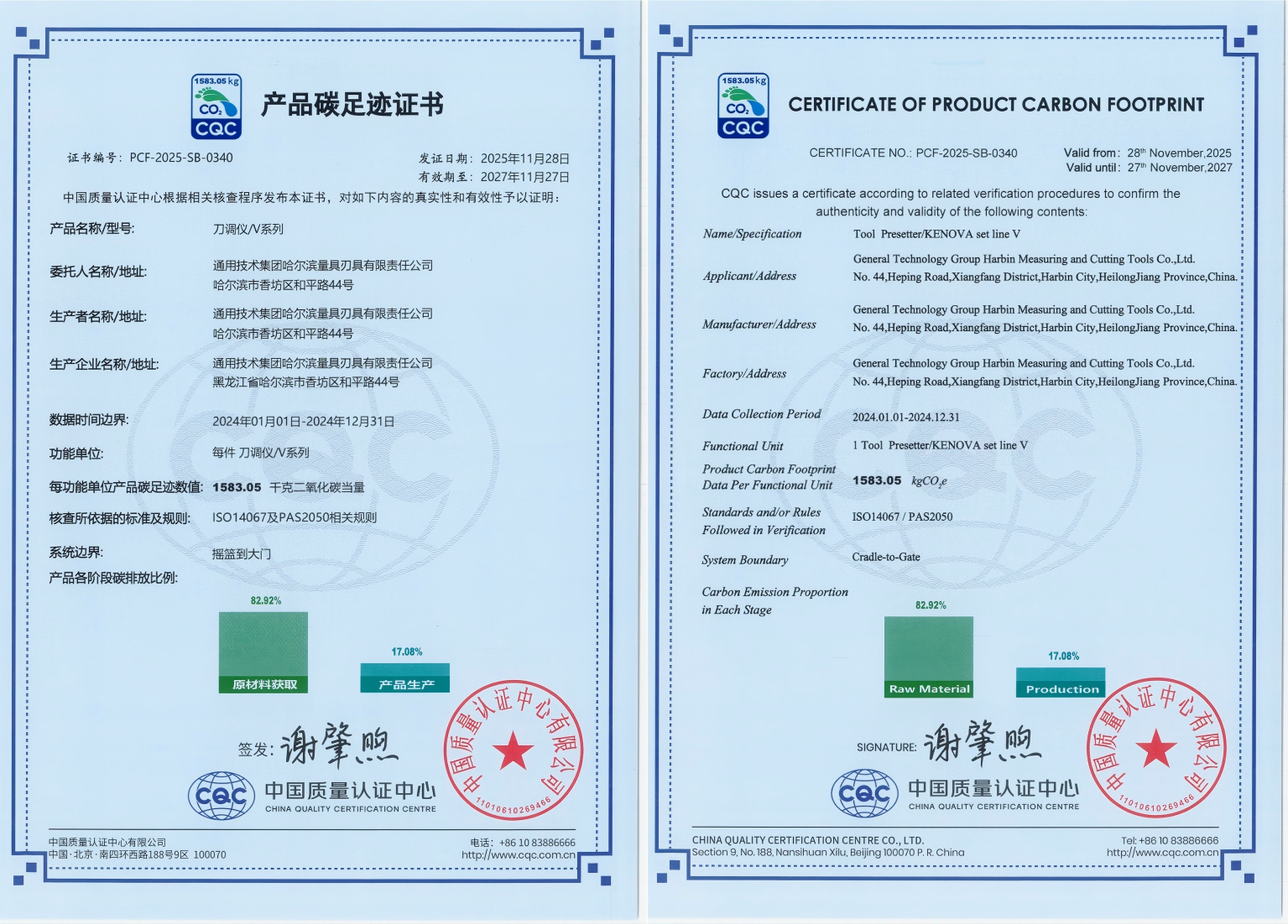 近日,通用技术哈量公司SK系列数控刀柄及V系列刀调仪产品顺利通过碳足迹认证,为公司绿色发展征程再添关键里程碑。