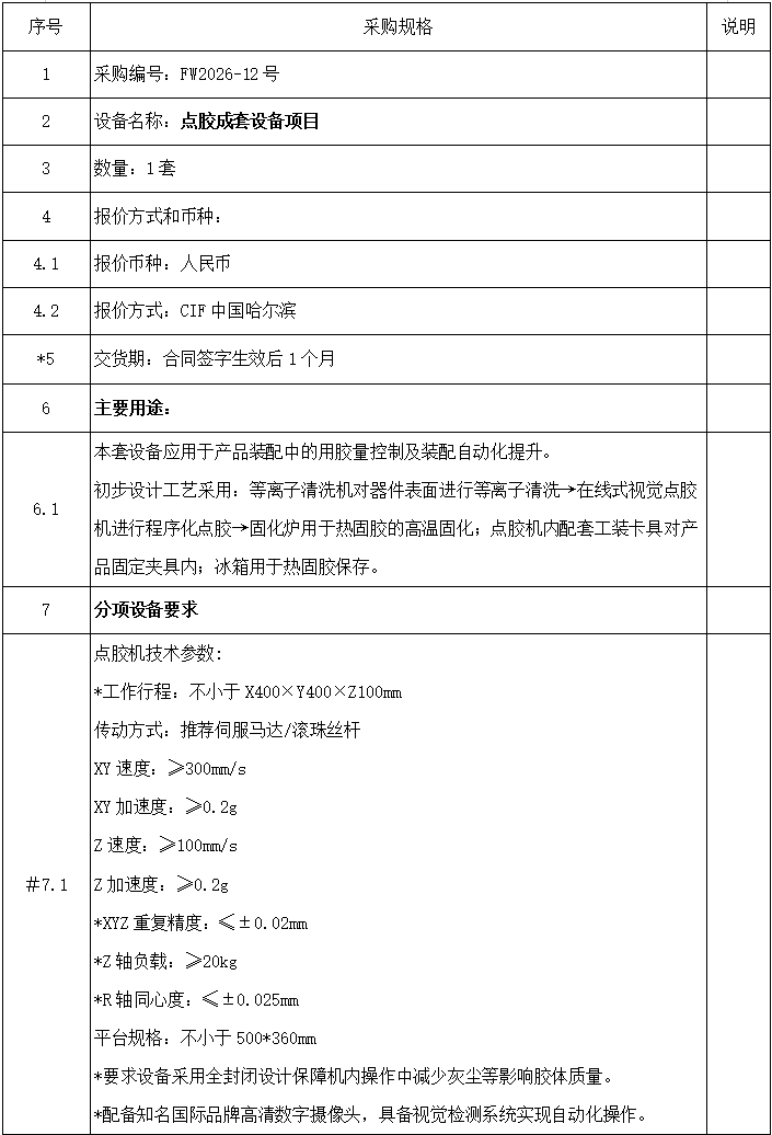 1.2 项目名称:通用技术哈量公司三维测头点胶成套设备采购项目
